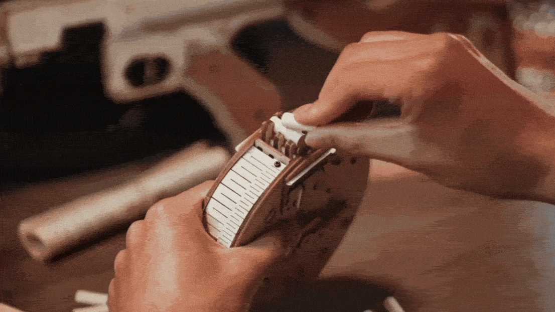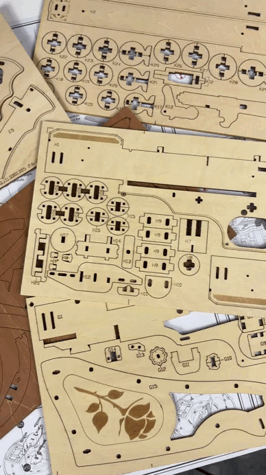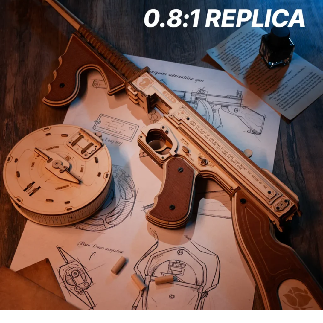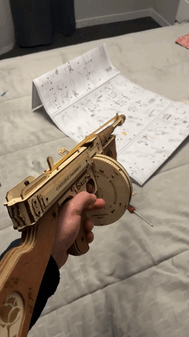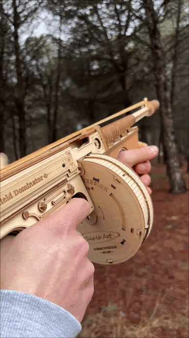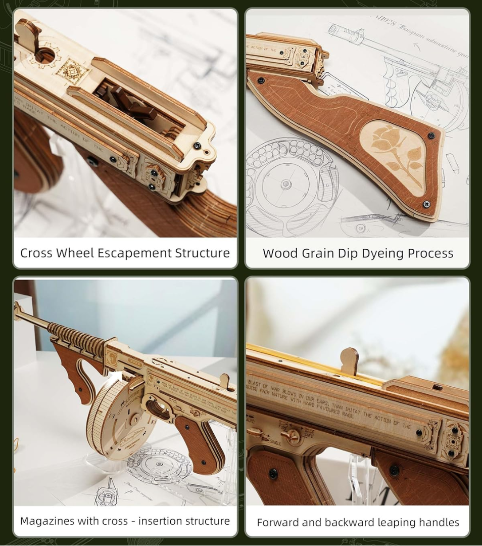 Forget plastic, enjoy laser-cut wood and real mechanical action.